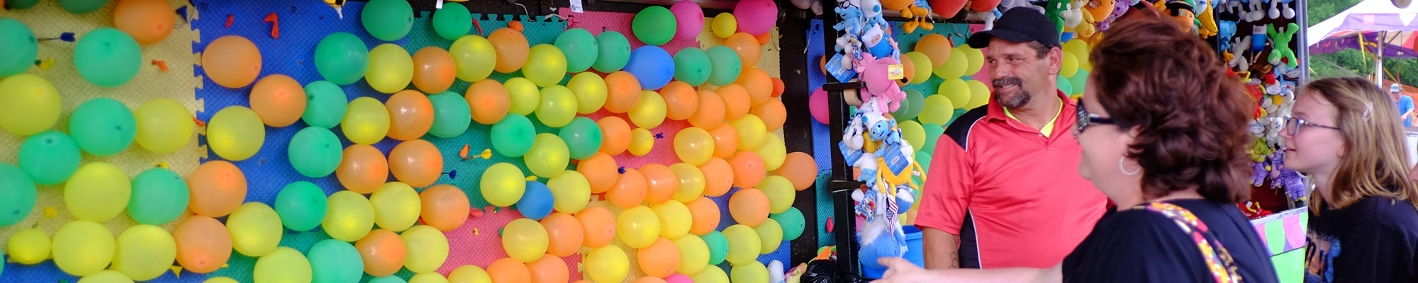 Popular carnival games include water races, the duck pond, balloon pop, basketball, break-a-bottle, big ring-o-bottle, grab bag, fish 'til you win game, bulldozer-token push, and the rope ladder. Everyone enjoys the colorful prizes: teddy bears, dogs, frogs, picture mirrors, computer portraits, buttons, t-shirts, wall-hangings and a fantastic array of neat trinkets and novelties. Fidget Spinners are the hot item this year, followed closely in popularity by Smurfs, Sesame Street characters, Emojis and Owls. And something new: the Block Buster game features remote control drones and helicopters as prizes.