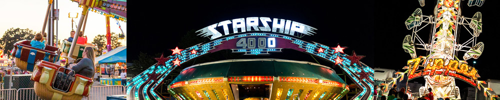 The Scrambler is a carnival classic produced by the Eli Bridge Company out of Illinois. The seats interlace with each other as they spin, but they never touch, much like a giant egg beater. The Starship 4000 is Wisdom Manufacturing’s latest update of the archetypal space ship simulation. The feeling of weightlessness never gets old as the ship races around at over 20 revolutions per minute. This ride features groundbreaking technological advances in its mechanical operation as well as dazzling new lighting and scenery packages.